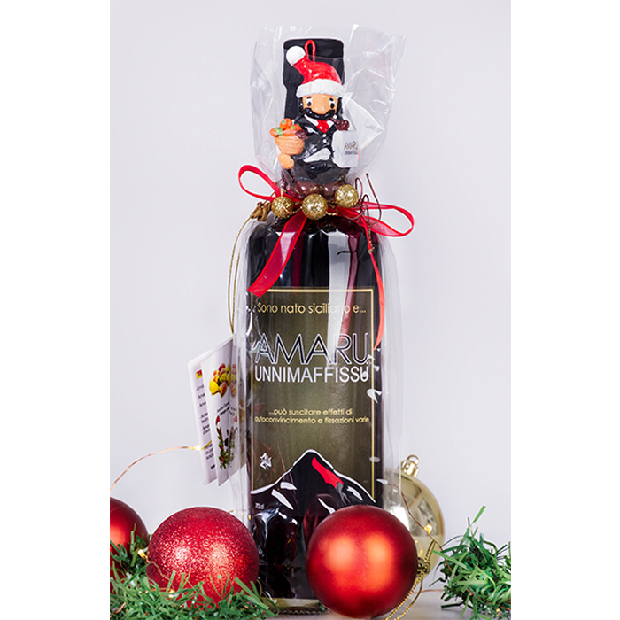 • Contenuto della Confezione La confezione include: 1 bottiglia di Amaru Unnimaffissu da 70 cl Realizzato con ingredienti autentici della tradizione siciliana – fichi d’India, carruba e scorza d’arancia – questo amaro si distingue per un sapore morbido e bilanciato. Con i suoi 26° vol. , è ideale da gustare in ogni momento della giornata. Se preferisci, puoi scegliere di ricevere al suo posto il nostro Limoncello Unnimaffissu , preparato con limoni 100% siciliani, senza l’aggiunta di coloranti né aromi artificiali. 1 decorazione con calamita a scelta Un dettaglio personalizzato e collezionabile, disponibile in diverse grafiche ispirate al mondo Unnimaffissu. Una confezione che unisce artigianalità, gusto autentico e un tocco di stile. Perfetta come regalo o come omaggio speciale.